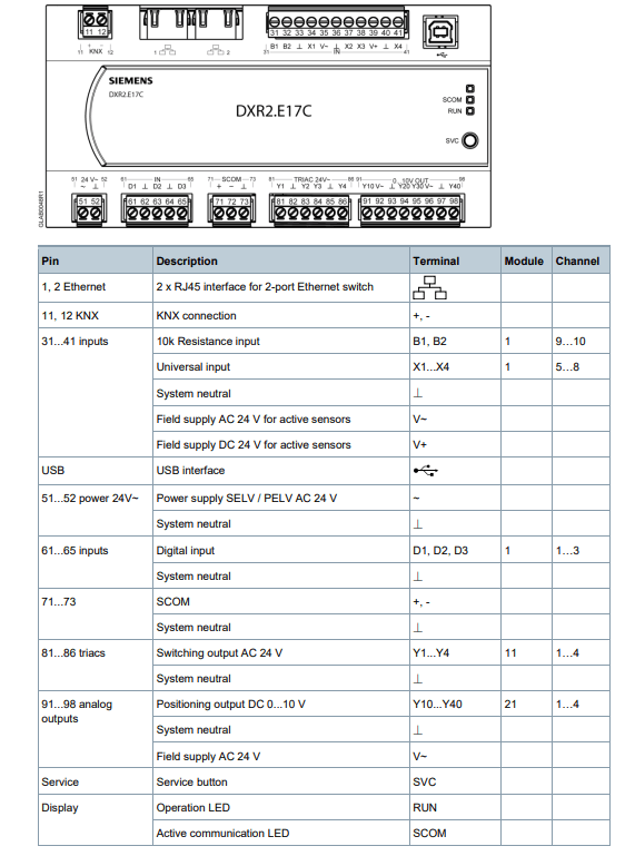 DXR2.E18..Compact room automation station, BACnet/IP, 24 V, DIN housing, 2 DI, 4 UI, 4 AO, 8 triac