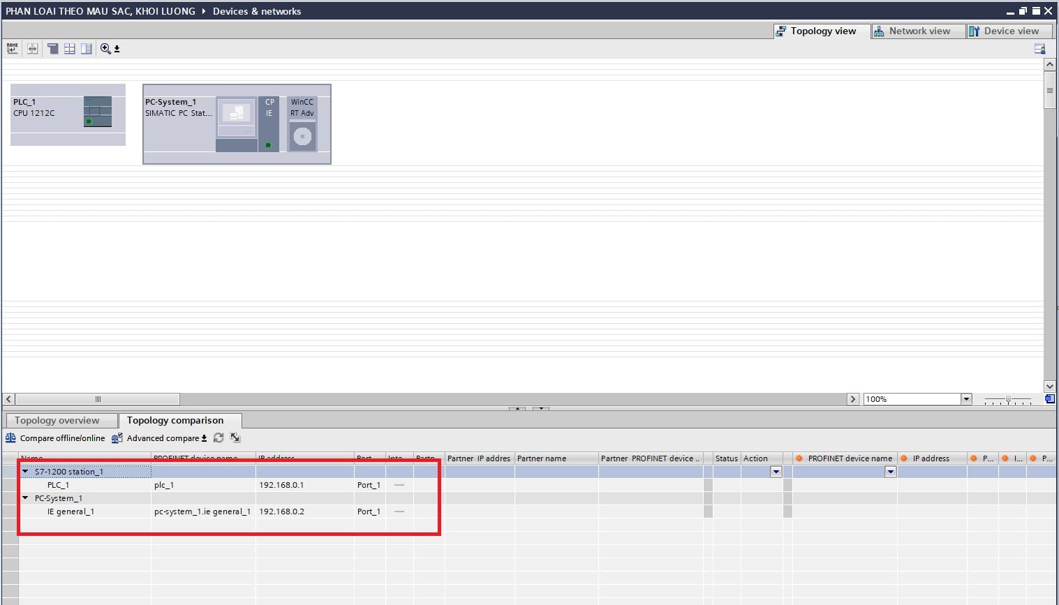 – PLC và HMI chưa được nối mạng trong Network View.